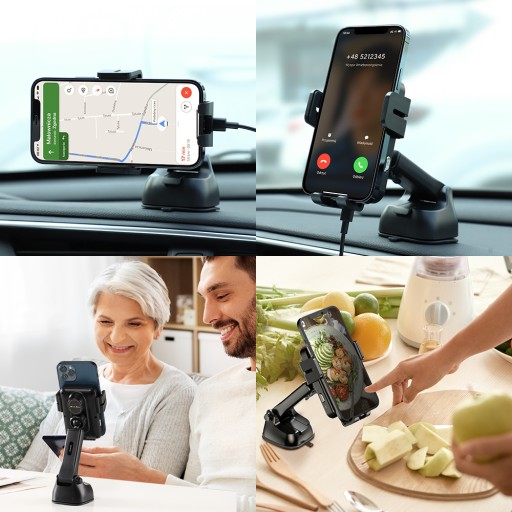 To, co odróżnia ten uchwyt od innych, to nowatorski, trójosiowy system montażu telefonu.