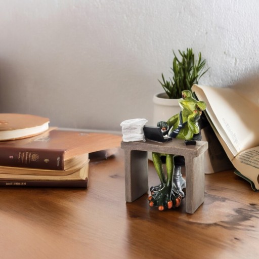 Ta śmieszna figurka żaby doskonale sprawdzi się jako element dekoracyjny na półce, biurku czy komodzie, przyciągając uwagę i dodając humorystycznego akcentu do każdego pomieszczenia.