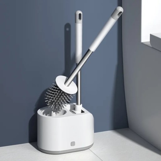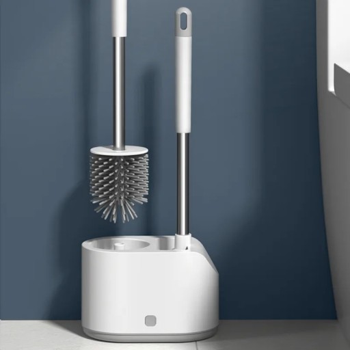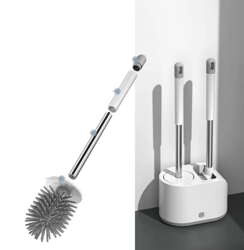 Ulepszony zestaw do czyszczenia szczotki toaletowej ze stylowym i nowoczesnym dopasowanym szarym kolorem i wentylowanym pojemnikiem na szczotki. Zawiera dwa różne rodzaje szczotek do czyszczenia, w tym silikonową miękką szczotkę do muszli klozetowej z miękką silikonową główką oraz szczotki pod prysznic do czyszczenia z ulepszonym gęstym włosiem, dzięki czemu sprzątanie łazienki i toalety jest prostsze.