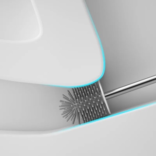 Główka szczotki wykonana jest z unikatowego, higienicznego silikonu oraz tworzywa TPR., który zabezpiecza przed rozwojem niebezpiecznych bakterii, pleśni i grzybów oraz brzydkich zapachów. Główka szczotki zakończona jest ochronnym kołnierzem, który zamyka szczotkę w pojemnika, co zwiększa higienę i bezpieczeństwo użytkowania