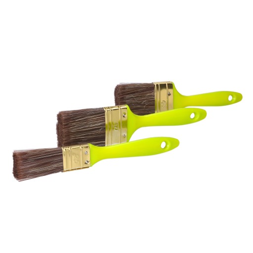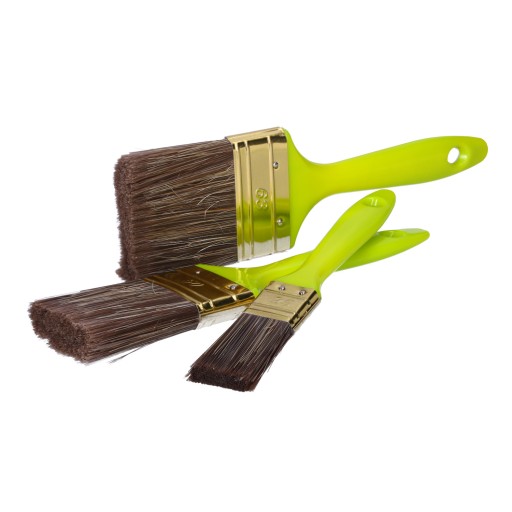 Trzy różne pędzle - o różnej szerokości do malowania infrastruktury ogrodowej, okien, drzwi, oraz mebli.