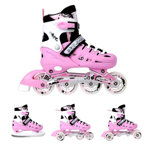 NH10905 Set Nils Extreme to łyżwy przeznaczone dla pasjonatów jazdy. Produkt oferuje 4 możliwości konfiguracji. Są to: łyżwy, łyżworolki, wrotki oraz rolko-wrotki.