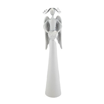 ФИГУРКА АНГЕЛА БЕЛОГО МЕТАЛЛА С СЕРДЦЕМ