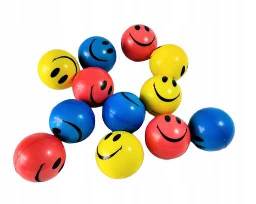 W zestawie znajdziemy 12 piłeczek ze wzorami uśmiechu emoji