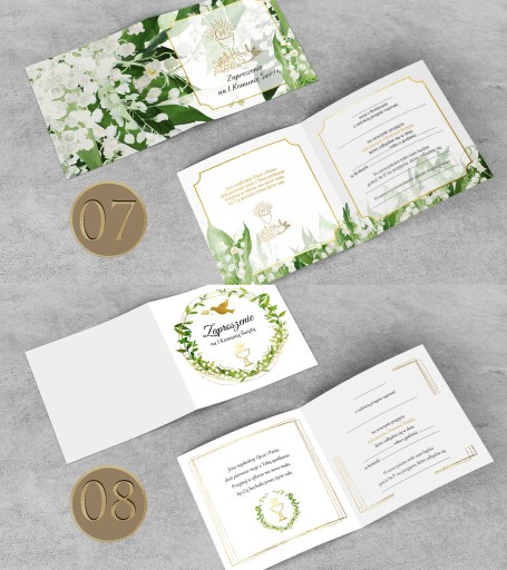 ZAPROSZENIA NA KOMUNIĘ STYL BOHO - 12 wzorów zaproszeń.