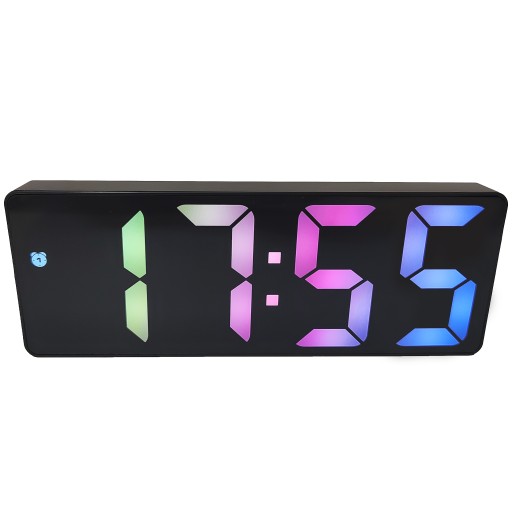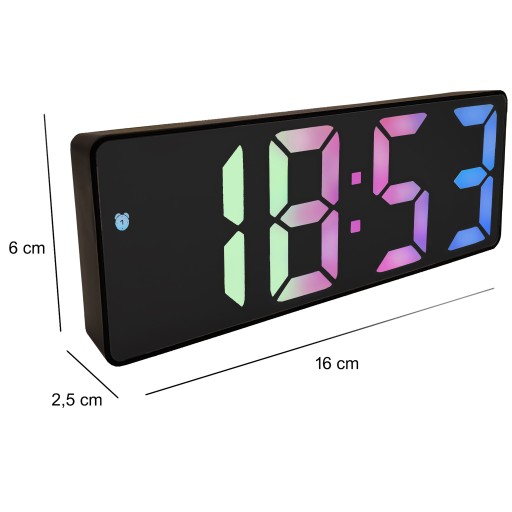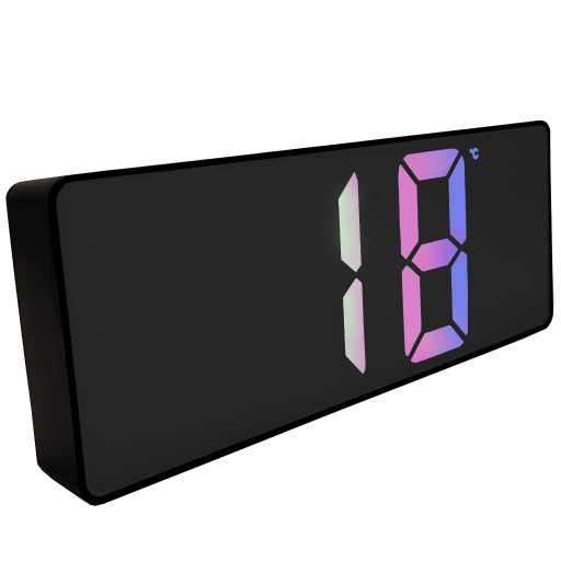 Zegar idealnie nada się do nowoczesnego salonu czy przytulnej sypialni. Jego ekran jest bardzo wyraźny, przez co nie ma problemów z odczytaniem wyświetlanych wartości. Uniwersalny, czarny kolor obudowy zegara sprawi, że budzik dopasuje się do każdego wnętrza, a kolorowe cyfry tworzą kontrast, dzięki któremu odczytanie wartości nie stanowi żadnego problemu!