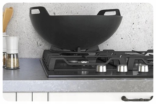 Pływa grzewcza Samsung jest wyposażona w specjalnie zaprojektowaną nakładkę typu „wok”, która zwiększa wydajność i bezpieczeństwo korzystania z patelni wok.
