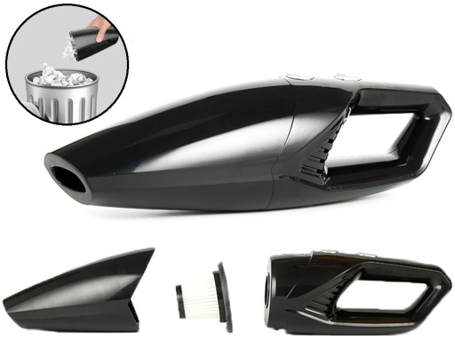 - Uniwersalny, bezworkowy odkurzacz samochodowy zasilany z gniazda zapalniczki samochodowej 12V. Doskonale usuwa drobne zanieczyszczenia z tapicerki samochodowej. Długi kabel zasilający oraz lekka i kompaktowa konstrukcja ułatwiają korzystanie z urządzenia. W komplecie dołączonych zostało 4 wymienne końcówki oraz elastyczny wąż, dopasowanych do rodzaju zabrudzeń. Filtr HEPA wielokrotnego użytku zapewnia długą i bezproblemową pracę.