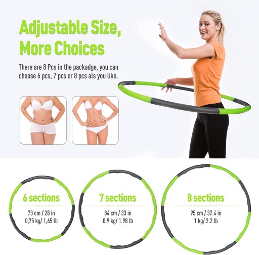 Wypustki po wewnętrznej stronie posiadają właściwości masujące. Dzięki ćwiczeniom zgubisz zbędne kilogramy i zyskasz idealną sylwetkę. Hula hop składa się z 8 elementów, dzięki czemu z łatwością możesz złożyć koło po skończeniu ćwiczeń i zaoszczędzić miejsce. Używanie sprzętu pobudza mięśnie brzucha poprzez specjalnie dostosowane wypustki masujące, powodując utratę tkanki tłuszczowej i wzmocnienie mięśni brzucha. Dzięki temu zyskasz piękną sylwetkę niewielkim kosztem a przy okazji pobudzisz Swoje mięśnie do pracy i odzyskasz energię.