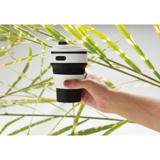 Składany kubek podróżny 320 ml, wykonany w 100% ze spożywczego materiału silikonowego, nieprzywierająca powłoka, szczelny, elastyczny, przed pierwszym użyciem należy zanurzyć kubek na kilka minut w gotującej wodzie, można myć w zmywarce, nie zawiera BPA