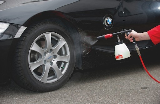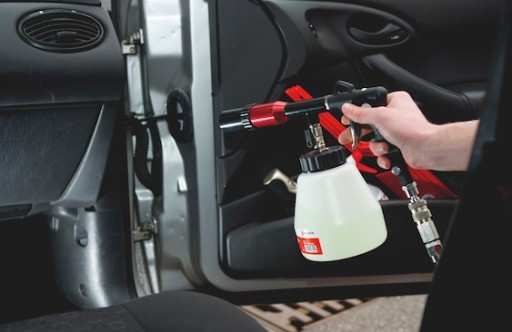 Profesjonalny pistolet do czyszczenia powierzchni w pojeździe.