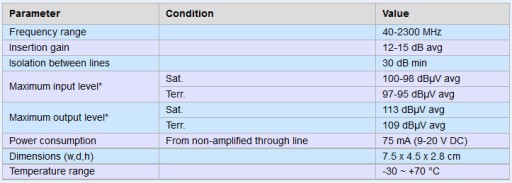 - Uniwersalny naziemno-satelitarny (2wejścia/2wyjścia) wzmacniacz.