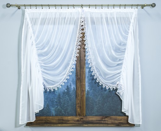 - Materiał: Firanki zostały wykonane z delikatnego, lecz trwałego materiału typu woal, który zapewnia przyjemny dotyk i estetyczny wygląd. Główną ozdobą są eleganckie wykończenia gipiurą, które dodają im wyjątkowego charakteru..