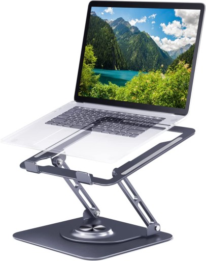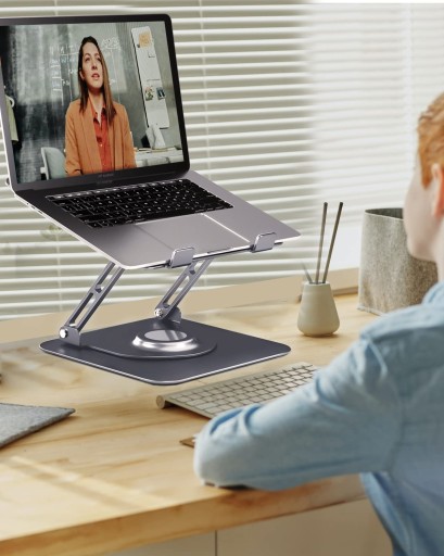 Obrót o 360 stopni: podstawka pod notebooka umożliwia łatwe przechylanie podstawki pod laptopa (do 60° w poziomie) lub obracanie (360°). Przechyl uchwyt na laptopa, aby korzystać z klawiatury pod wygodnym kątem, lub obróć laptopa, aby pokazać współpracownikom swoją pracę, dzięki uchwytowi na laptopa wszystko jest takie proste.