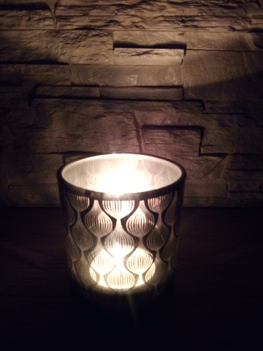 Jest wykonany ze szkła srebrzonego. Posiada piękny wzór dzięki któremu światło wypalanej świecy jest pięknie podkreślone.