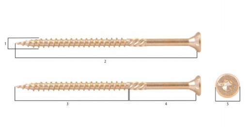 - Wkręt konstrukcyjny z łbem stożkowym i gniazdem do połączeń elementów drewnianych i drewnopochodnych w konstrukcjach drewnianych.
