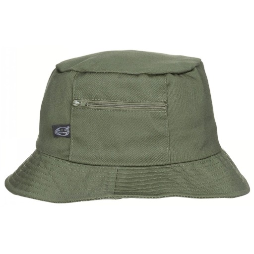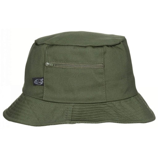 Klasyczny kapelusz wędkarski z kieszonką wyposażoną w zamkiem błyskawicznym po prawej stronie