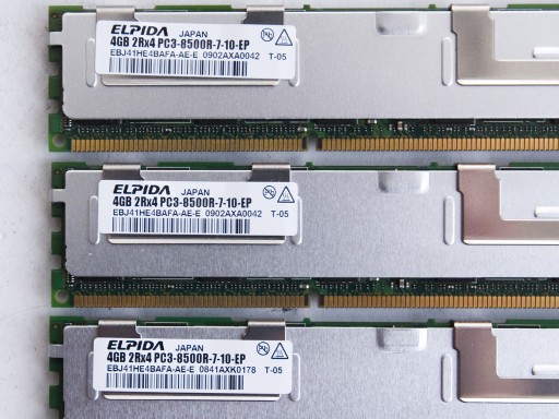 Przedmiotem sprzedaży jest używana pamięć ELPIDA 4GB DDR3 PC3-8500R - ECC RDIMM - EBJ41HE4BAFA-AE-E