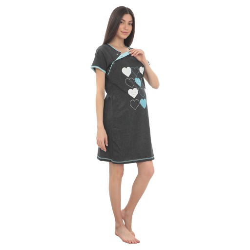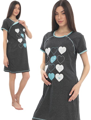 НОЧНАЯ РУБАШКА ДЛЯ КОРМЛЕНИЯ, ХЛОПОК, ПЯТНА, СЕРДЕЧКИ, ХЛОПОК, М