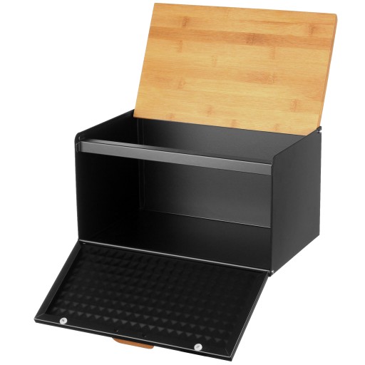 - Chlebak stalowy w kolorze czarnym z drewnianą pokrywą