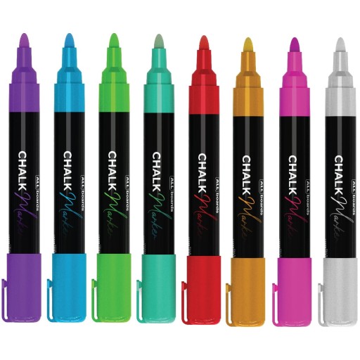 Wysokiej jakości markery kredowe idealne dla różnego rodzaju tablic. Tusz który został użyty w markerach ALLboard jest niepylący, dzięki czemu bezpiecznie mogą ich używać nawet dzieci. Struktura chemiczna płynnego tuszu sprawia że jest on dobrze przylegający do gładkich powierzchni takich jak tablice czy szkło.