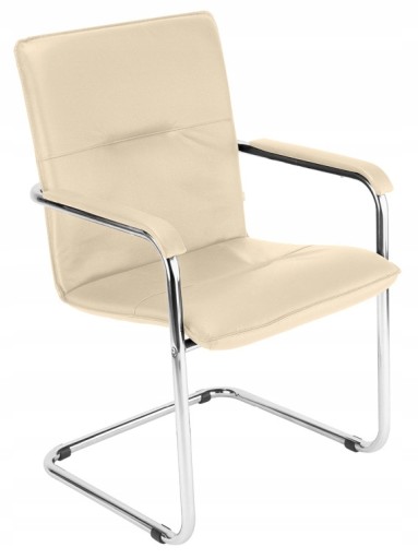 Popularny produkt renomowanego polskiego producenta. Bardzo solidna konstrukcja. Stelaż wykonany z metalu, chromowany. Siedzisko i oparcie tapicerowane standardowo skajem, łatwe do utrzymania w czystości, łatwozmywalne. Wygodne tapicerowane podłokietniki.