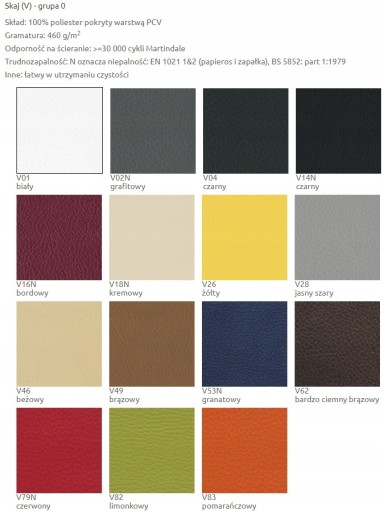 Krzesło dostępne w kilkunastu kolorach do wyboru. Lista dostępnych kolorów widoczna poniżej. Wybrany kolor proszę podać w informacji do sprzedającego.