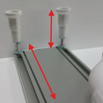 W zestawie znajduje się nóżki do regulowania w pionie i poziomie, dzięki czemu można dopasować wysokość Opływu do indywidualnej sytuacji w łazience.