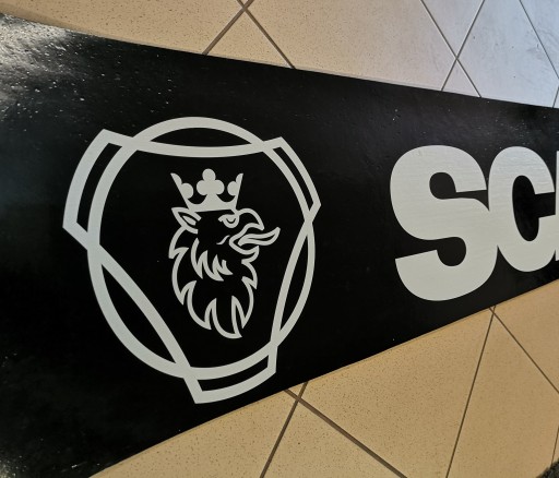 Chlapacz wykonany z CZARNEJ gumy z BIAŁYM nadrukiem SCANIA