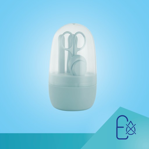 Kompletny zestaw do paznokci dla niemowląt zapakowany w praktyczne wodoodporne etui, które umożliwia higieniczne przechowywanie oraz przenoszenie.
