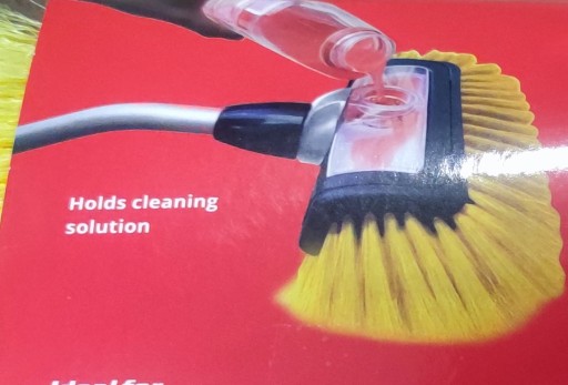 W szczotce umieszczono pojemnik na płyn, który umożliwia mycie również z odpowiednim detergentem.