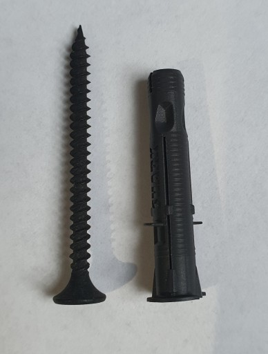 - w zestawie śrubki do płyty w kolorze czarnym oraz kołki z wkrętem do montażu do ściany 6x35 mm