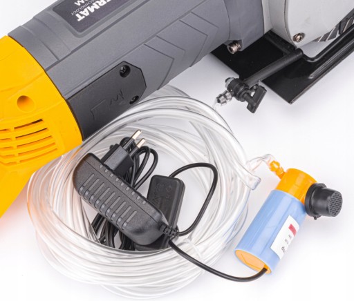 Do bruzdownicy dołączony został również system natrysku wody na tarcze wraz z pompką i wężykiem, który delikatnie schładza je podczas cięcia, jak i znacznie ogranicza wytwarzanie pyłów podczas pracy.