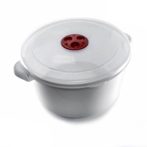 Garnek Smart o pojeności 1 l. Przystosowany jest do użycia w kuchence mikrofalowej i przechowywania w lodówce. Wytrzymuje on bowiem temperatury od -30°C do +85°C. Idealny do gotowania, podgrzewania i przygotowywania dań w mikrofali. Przezroczysta pokrywa zaopatrzona jest w odpowietrznik odprowadzający nadmiar pary podczas gotowania w mikrofali. Pokrywa posiada specjalne wyżłobienia, dzięki czemu można ustawić garnki jeden na drugim, oszczędzając miejsce na kuchennych półkach. Garnek posiada wygodne, ułatwiające przenoszenie uchwyty.