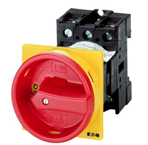 Rozłącznik główny / rozłącznik izolacyjny wł./wył. wg IEC/EN 60947-3, 690V/32A, klasa ochrony przód IP65, rękojeść czerwona z wieńcem blokującym żółtym, zamykanie 3 kłódkami, rozłączniki izolacyjne P1 mają niewielkie wymiary i solidną konstrukcję. Napęd ręczny działa bezpośrednio na zestyki. Zestyki po wyłączeniu rozwierają się w sposób wymuszony.. Ogólne konstrukcje: obudowa natynkowa z izolacją, montaż, montaż centralny, montaż pośredni, montaż rozdzielacza IVS