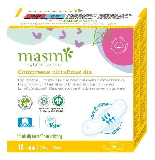 Produkty Masmi nie zawierają: perfum, super absorbentów w postaci proszków i pudrów, wiskozy, celulozy, plastiku, chloru, dioksyn.