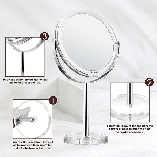 - Stabilne i ustawne: Okrągłe lusterko do makijażu ze stojakiem jest łatwe do ustawienia bez wiercenia i klejenia, a szeroka podstawa zapewnia niezbędną stabilność.