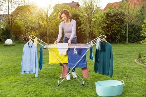 Dzięki aluminiowym linkom jest odporna na rdzę i trudne warunki atmosferyczne. Suszarka do ubrań Viledy może być stosowana wewnątrz domu, ale także jako suszarka balkonowa czy tarasowa.