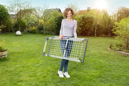 Suszarka do prania Aluminium 100 to wyjątkowo lekka suszarka na kółkach, przeznaczona do rozłożenia codziennego prania zarówno w pomieszczeniu jak i na zewnątrz.