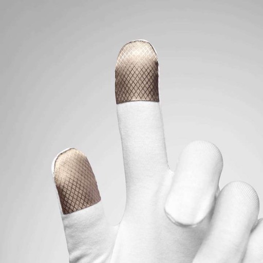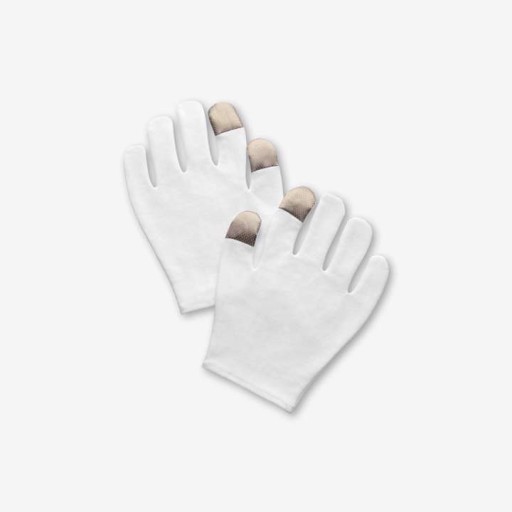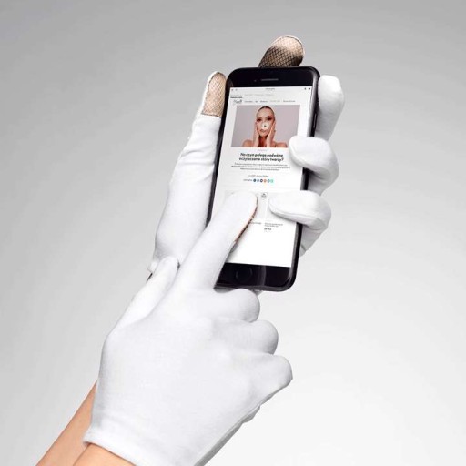 Rękawiczki do nawilżania z funkcją dotykową na kciukach i palcach wskazujących. Dzięki nim uzyskasz lepsze rezultaty działania Intensywnie odmładzającego kremu do rąk SPF 25 NovAge.
