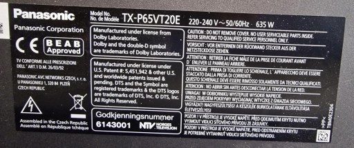 Model TV: TX-P65VT20E