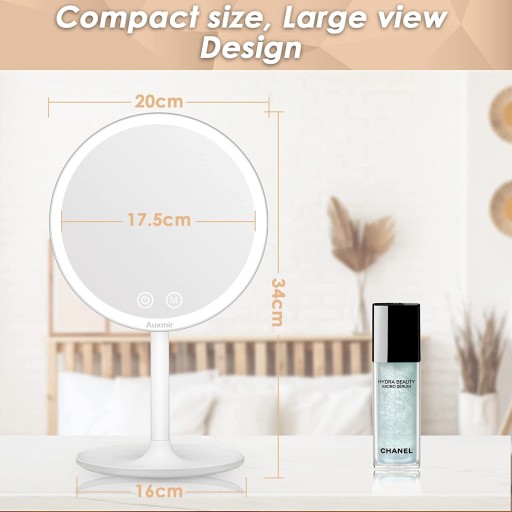 - 3 regulowane kolory światła: Lusterko do makijażu marki Auxmir z 46 diodami LED i 3 kolorami światła (światło białe, ciepłe i naturalne) nadaje się do używania w różnych warunkach. Lusterko daje nawet w słabym świetle wyraziste odbicie.