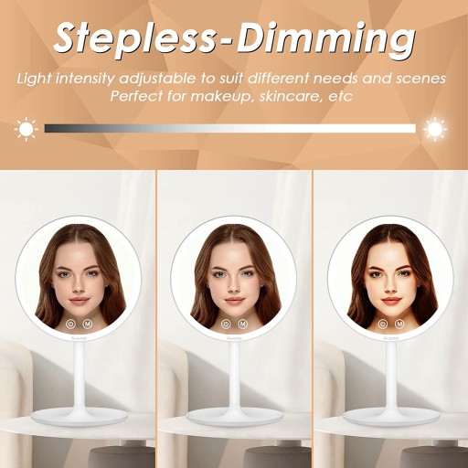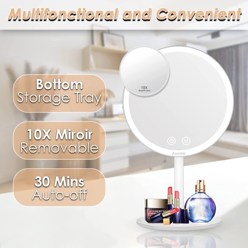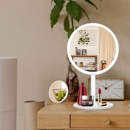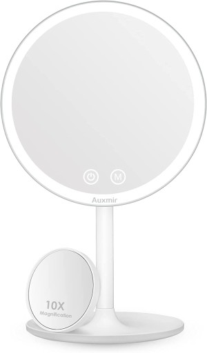 - Lusterko powiększające 1x / 10x: Lusterko do postawienia marki Auxmir z przyciemnianym światłem LED i małym powiększającym 10-krotnie dodatkowym lusterkiem jest idealne do makijażu, golenia, nakładania soczewek kontaktowych i pielęgnacji twarzy, a szczególnie dobrze nadaje się dla osób starszych i dalekowzrocznych.