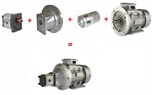 Wykorzystanie elektrycznego 3 - fazowego do napędu pompy hydraulicznej. Do połączenia pompy z silnikiem wykorzystano łącznik dzwonowy i sprzęgło kłowe (zdj.):