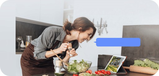 Łatwe zarzadzanie EB3 z aplikacji EZVIZ. Możesz też sterować podglądem na żywo za pomocą poleceń głosowych, np. powiedz "Hej Google" lub "Alexa", aby wyświetlić obraz na dużym ekranie.