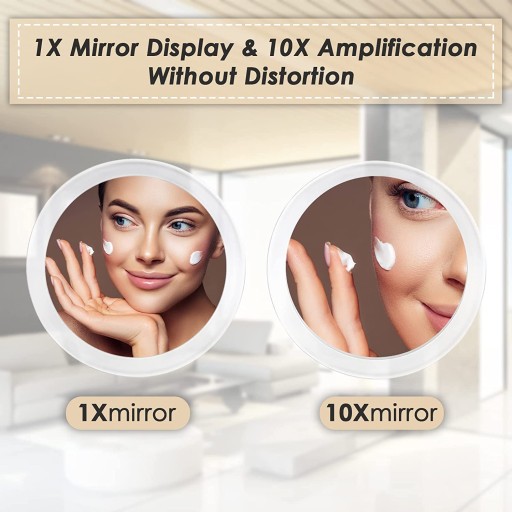 - Lusterko powiększające z przyssawką: Dzięki 10-krotnemu powiększeniu twoja skóra i fryzura będą dla ciebie wyraźnie widoczne. Idealne do regulacji brwi pęsetą, do makijażu, do zakładania soczewek kontaktowych, uwidoczni wyniki pielęgnacji skóry oraz zatkane pory.