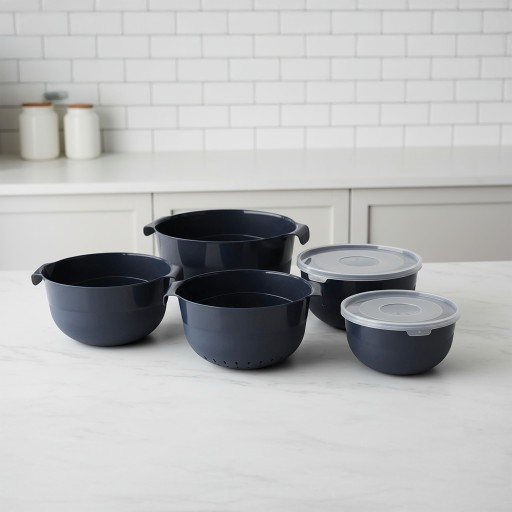 - 5 × miski kuchenne z tworzywa sztucznego (o średnicach 24, 22, 19, 16 i 14 cm)