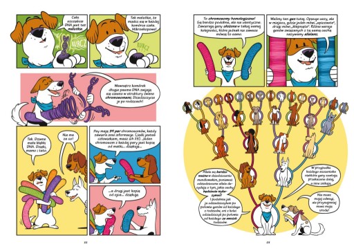 Przygotuj się do badania głębin oceanów, dalekiego kosmosu i wszystkiego po drodze! Krwiożercze rekiny, skomplikowane roboty, upierzone welociraptory i dużo więcej czeka na ciebie w „Naukomiksach”! Zerwij się ze smyczy z psami! Jak dobrze znasz swojego ulubionego czworonoga? Jaka jest różnica między rasą chihuahua a bernardynem? Czy psy naprawdę pochodzą od wilków? I jak bystre są w rzeczywistości? Wraz z przyjaznym kundelkiem wyrusz w podróż, by odkryć, skąd się wzięły psy, jak genetyka i ewolucja wpływają na gatunki i dokąd właściwie poleciała ukochana piłeczka. W książce znajdziesz liczne smakowite fakty, które sprawią, że przewrócisz się na plecy i będziesz prosić o więcej! Andy Hirsch stworzył kilka książek do serii „Naukomiks”. „Psy – od drapieżników do obrońców” to kolejna po „Kotach” ukazująca się w języku polskim. Mieszka w Dallas w Teksasie. Powyższy opis pochodzi od wydawcy.