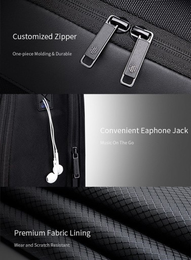 Plecak posiada specjalny otwór na słuchawki, dzięki któremu telefon może pozostać wewnątrz plecaka.