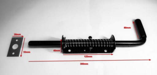 ✔️Rygiel ze sprężyną do bramy lub furtki, posiadający gruby bolec o średnicy fi 15 mm. Produkt do przykręcenia, malowany na czarno.
